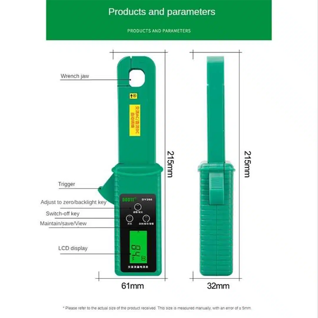 The Low Current DC Clamp Meter utilizes advanced digital-integrated technology to automatically recognize AC or DC currents. It features a convenient auto-zero button, eliminating the need for a rotating zero knob. Designed for non-contact measurements, this meter provides high accuracy, strong anti-interference, and auto-ranging capabilities, making it a reliable tool for fast, safe, and efficient electrical testing.